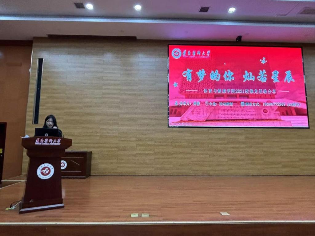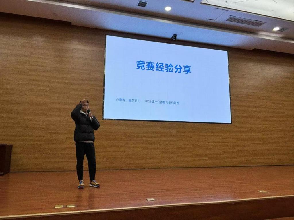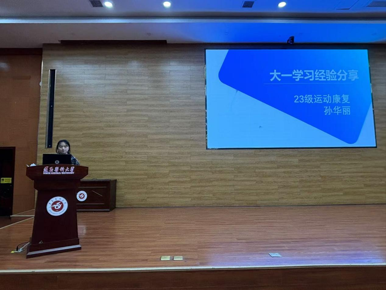 分享会上,23级社体专业周宇香和运康专业孙华丽两位同学先后分享了自己在大一时的学习方法和自我管理经验;21级社体专业直尔石初分享了自己在竞技赛场上的成长经验;21级运康专业陈美琳和黄倩分别从学习心得、保研择校等方面分享了自己的成功经验;并在交流提问环节中,针对同学们遇到的问题和存在的疑惑进行交流解答。
