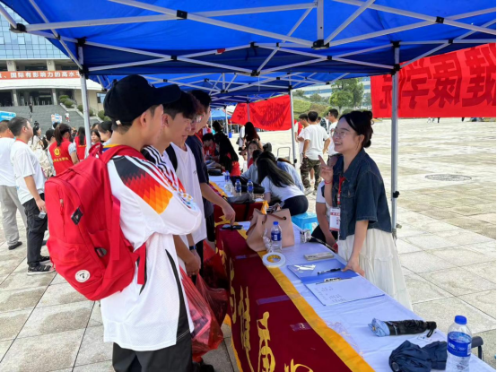 9月7日,公司领导、辅导员、新生班主任全程现场解答新生及家长们对专业学习、校园生活的一切疑虑。员工班导和志愿者们也以满腔的热情迎接新生的到来,大家齐上阵、早就位、喜迎新,有条不紊的开展迎新工作。此外,公司还组织“以诗换水”的趣味小游戏,通过诗词接龙游戏提升员工对传统文化的热爱。全院上下同心协力,只为给新同学一个温馨、有序、充满希望的开学体验。