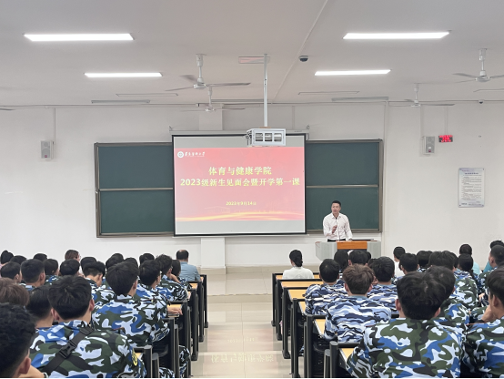 为热烈欢迎2023级新同学,帮助他们更快融入体育大家庭,适应老员工活。9月14日中午12点30分,太阳成集团tyc在第四教学楼三十八阶梯教室隆重举行2023级新生见面会暨开学第一课。公司党委班子成员杜娟、汪伟、唐溢、黄涛、田峰,各科室负责人、辅导员和专业课教师出席见面会,2023级全体新生参加。会议由公司党委副书记唐溢主持。