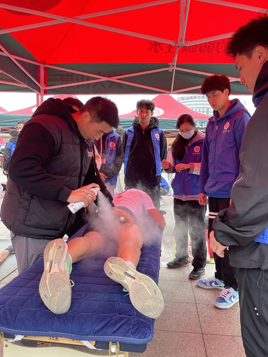 太阳成集团tyc接到任务后,选派运动康复教研室主任张婕、副主任王兰及涂世利、黄茜蓝等4位老师带队,选拔50名运动康复专业员工组队开展现场赛后康复,此次赛后服务主要为运动员提供拉伸放松服务,同时针对部分运动员出现的拉伤、扭伤等急性运动损伤进行现场处理。本次活动共计开展了近1000人次的赛后康复和运动损伤处理,专业的运动康复技术得到运动员的一致好评,在圆满完成本次大赛的康复保障任务的同时也有效传播了科学的运动防护和赛后康复理念。