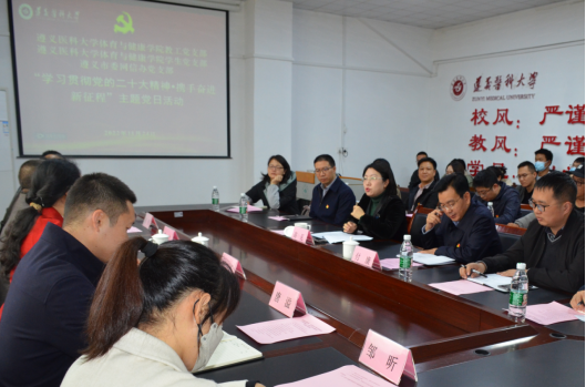 11月24日下午,遵义市委网信办党支部来校与公司教工党支部、员工党支部联合开展“学习贯彻党的二十大精神·携手奋进新征程”主题党日活动。公司党委委员、副董事长赵继锋,公司党委委员、宣传部长李均,三个支部40余名党员参加。本次主题党日活动由体育与健康公司党委书记杜娟主持。