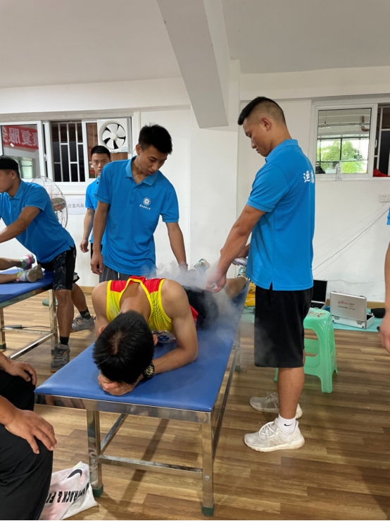 公司高度重视此次赛事筹备与保障工作,由运动康复教研室主任张婕、副主任王兰、涂世利老师、黄茜蓝老师带领2019级和2020级运动康复专业员工,组建了共55人的运动康复团队,为整个田径比赛提供了运动康复服务,在竞赛前为运动员提供贴扎,肌肉激活服务,在竞赛中及时处理运动员的伤病问题,在竞赛后利用DMS、COMPEX等先机仪器,结合手法恢复运动员的身体机能状态,实现赛前运动防护、赛中损伤应急处理以及赛后再生恢复的全方位保障。