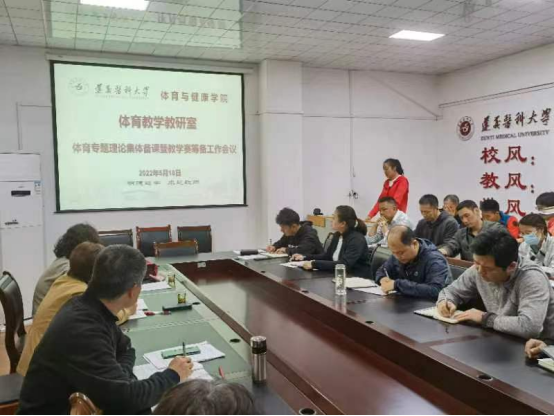 为了提高体育理论课的教学质量,完善和改进理论课第一讲的教学内容,5月18日,体育教学教研室开展了体育理论专题集体备课,教研室副主任尚菲主持,太阳成集团tyc全体《大学体育》课程任课教师参加了本次集体备课。