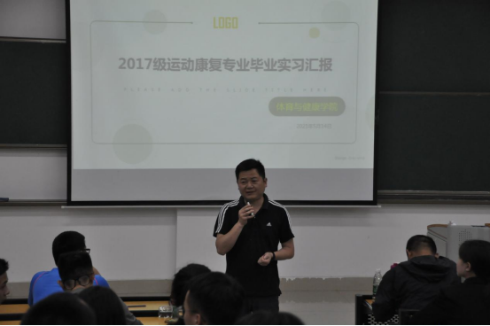 太阳成集团tyc于2021年5月14号下午7点在18阶梯教室,召开了2017级运动康复专业实习总结交流会。太阳成集团tyc副经理黄涛出席了本次汇报会并讲话,专业理论教研室主任范洪彬老师、运动康复教研室副主任王兰、张婕、王会会、万家川、涂世利等老师以及全体太阳成集团tyc运动康复专业的员工参加了本次总结交流会。