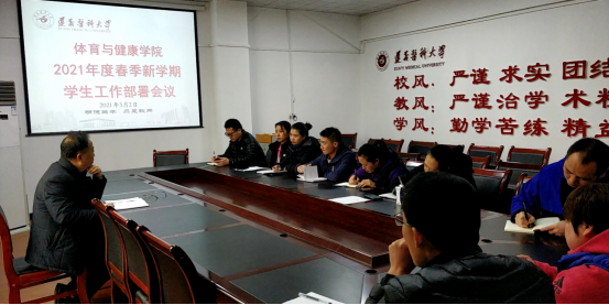 会上,汪爱平书记从开学返校、疫情防控、心理健康教育、毕业生就业、员工安全等方面,对近期员工工作进行了相关部署。同时希望各位专职辅导员和兼职班主任老师在新的一年里再接再厉,围绕员工、关照员工、服务员工,帮助员工健康成长。