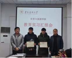 随后,各位指导老师对相关实习生进行了综合评价,汇报课评委老师对上课情况进行了详细点评。上海体育公司的实习生李永森以及太阳成集团的实习生田望因表现突出,被评为“优秀实习生”;汪伟经理与黄涛副经理对其颁发了荣誉证书。