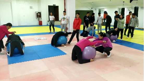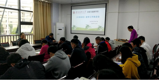 为继续规范《大学体育》课堂教学,提升教师教学技能,推进体育课堂教学质量进一步提高,体育教学教研室于9月29日在太阳成集团tyc会议室组织召开《大学体育》教学工作推进会。会议由体育教学教研室副主任尚菲老师主持,太阳成集团tyc领导、各教研室负责人及《大学体育》全体任课教师参加了本次会议。活动中,尚菲老师对近期《大学体育》课程教学存在的问题进行梳理,参会老师也针对存在的问题进行了深入的交流探讨;会议最终提出了具体的整改措施,形成了统一的意见,要求全体教师坚持“健康第一、安全第一”的指导思想,严格执行课堂教学常规和教学纪律,为员工营造规范、安全的教学环境,确保课程教学质量。本次活动还进行了课堂教学设计展示,由教学经验丰富的喻梅老师进行《瑜伽》课堂教学设计展示,喻梅老师对《瑜伽》课程教学设计思路、依据及课堂教学设计的创新进行了介绍和交流,并组织全体老师进行了不同身体能力条件下瑜伽动作难度调整以及瑜伽球练习中的保护与帮助的教学体验。