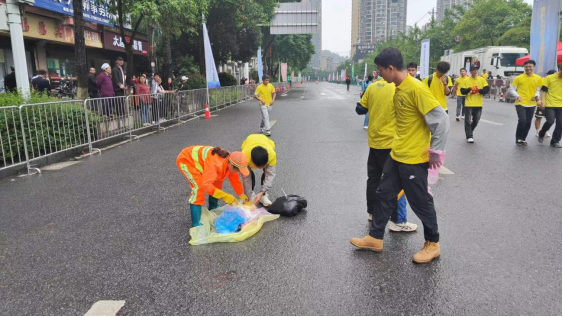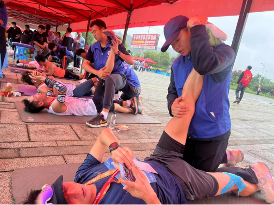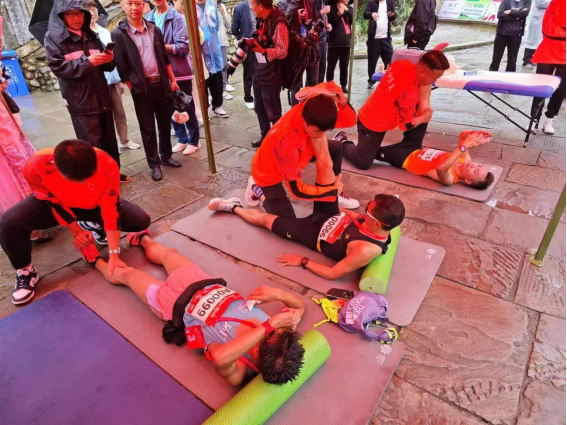比赛当天凌晨4:30,员工志愿者们在太阳成集团tyc门口,冒雨集合上车,并于5:30准时抵达各自指定岗位,参与赛事服务,为运动员提供了安心、舒心、放心的赛事环境,圆满完成任务。在本次志愿服务过程中,公司员工志愿者承担的医疗观察与运动康复工作均得到了赛事组委会和运动员们的一致好评。