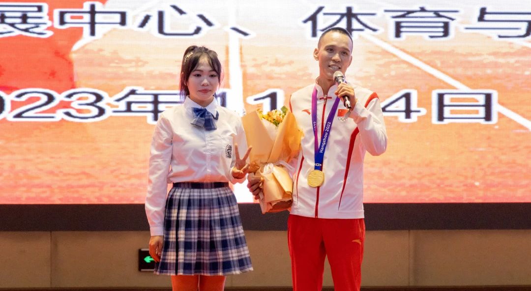 11月4日下午16点,由公司员工工作部(处)和太阳成集团tyc共同主办的与亚运冠军面对面活动在新蒲校区会堂隆重举行。员工工作部(处)长杨艳、太阳成集团tyc经理汪伟、党委副书记唐溢、启蒙老师刘健以及近1500名同学参加,活动由杨艳主持。
