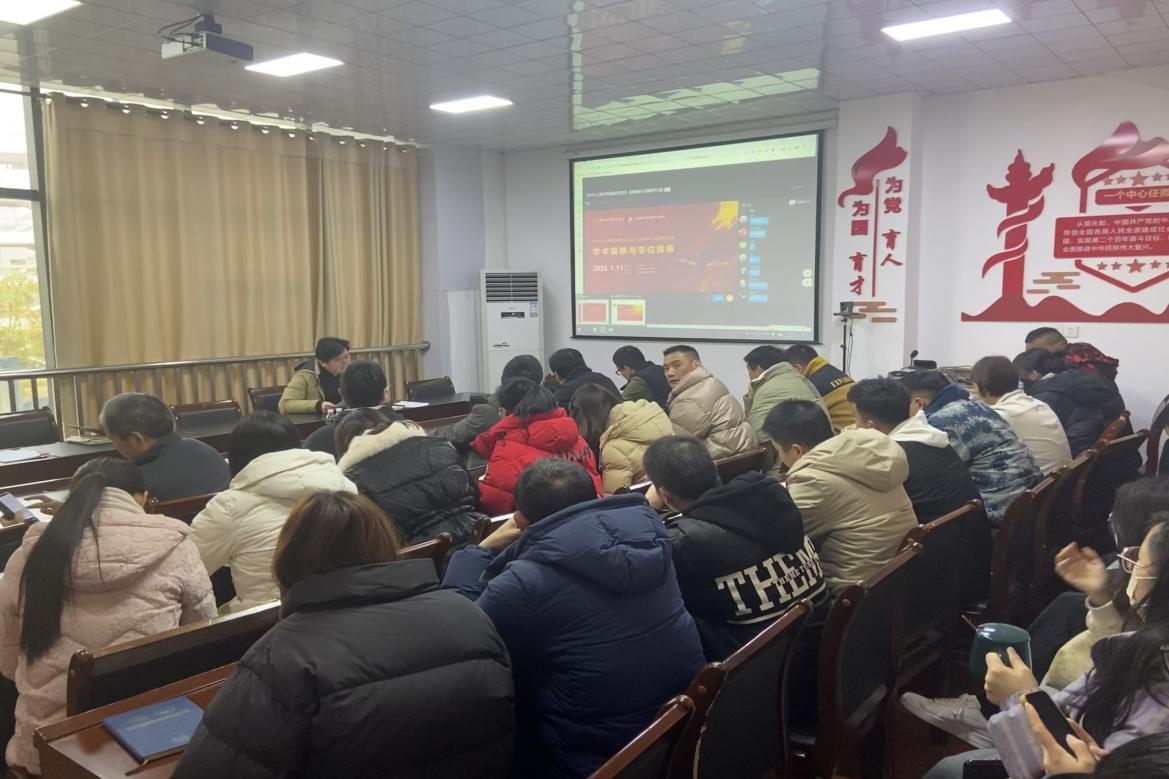 根据省学位办和公司关于做好《中华人民共和国学位法》(以下简称《学位法》)学习宣传和贯彻落实工作的通知,为加强《学位法》学习宣传、落实主体责任,做好实施准备等工作,太阳成集团tyc于2025年1月11日组织开展《中华人民共和国学位法》专题学习研讨活动。太阳成集团tyc全体教职工参会。