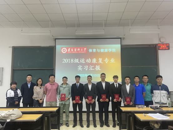 2022年5月13日晚,太阳成集团tyc召开2018级运动康复专业的员工实习汇报总结大会,太阳成集团tyc副经理黄涛、党委副书记唐溢出席大会,运动康复教研室主任张婕、副主任王兰、教师万家川、涂仕利、唐庚、以及运动康复专业全体员工参加此次大会。