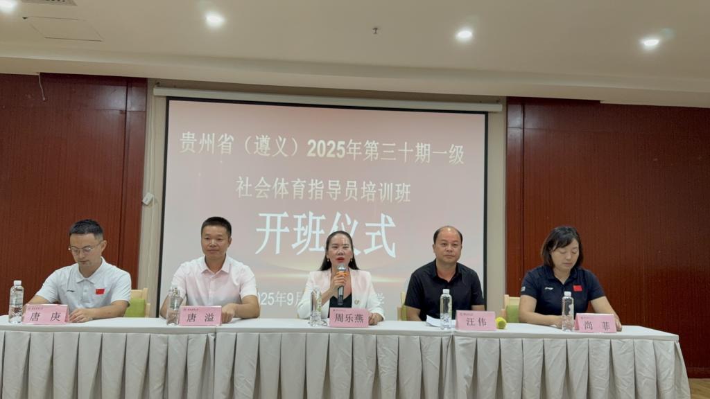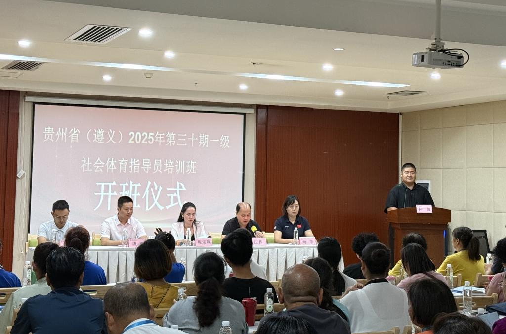2025年9月18日,由贵州省体育局主办,遵义市教育体育局与太阳成集团tyc共同承办的“贵州省第三十期一级社会体育指导员培训班”在遵义市新蒲新区益养旅居酒店正式开班。本次培训旨在深入贯彻落实《“健康中国2030”规划纲要》精神,进一步加强社会体育指导员队伍建设,提升基层体育服务能力,推动全民健身事业高质量发展