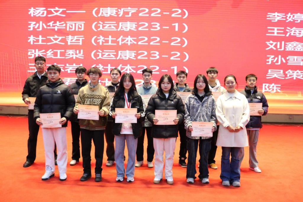 一等奖:周杰峰 (康疗22-1)、唐率夫 (社体23-1)、李宝龙 (社体22-2)、汪晓雨 (运康22-1) 、张林 (运康22-1)