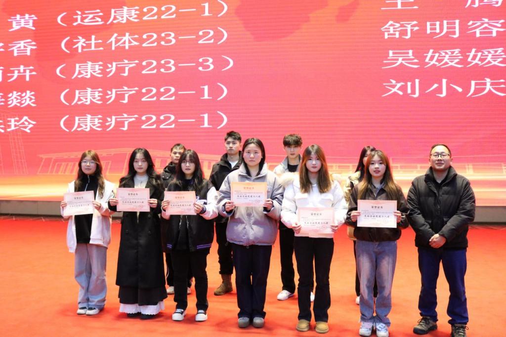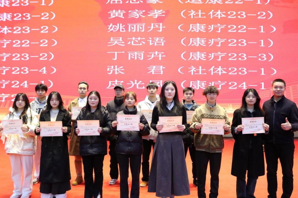 吴策单 (运康23-1)、屈志豪 (运康22-1)、张红梨 (运康23-2)、黄家孝 (社体23-2)、田森华(社体23-2)、姚丽丹(康疗22-1)、刘津羽(康疗22-2)、吴芯语 (康疗23-1)、彭柯文 (康疗23-2)、丁雨卉 (康疗23-3)、宋  婷 (康疗23-2)、张 君(社体23-1)游俊莎(康疗24-1)、皮光凤(康疗24-1)、罗云云(康疗24-1)